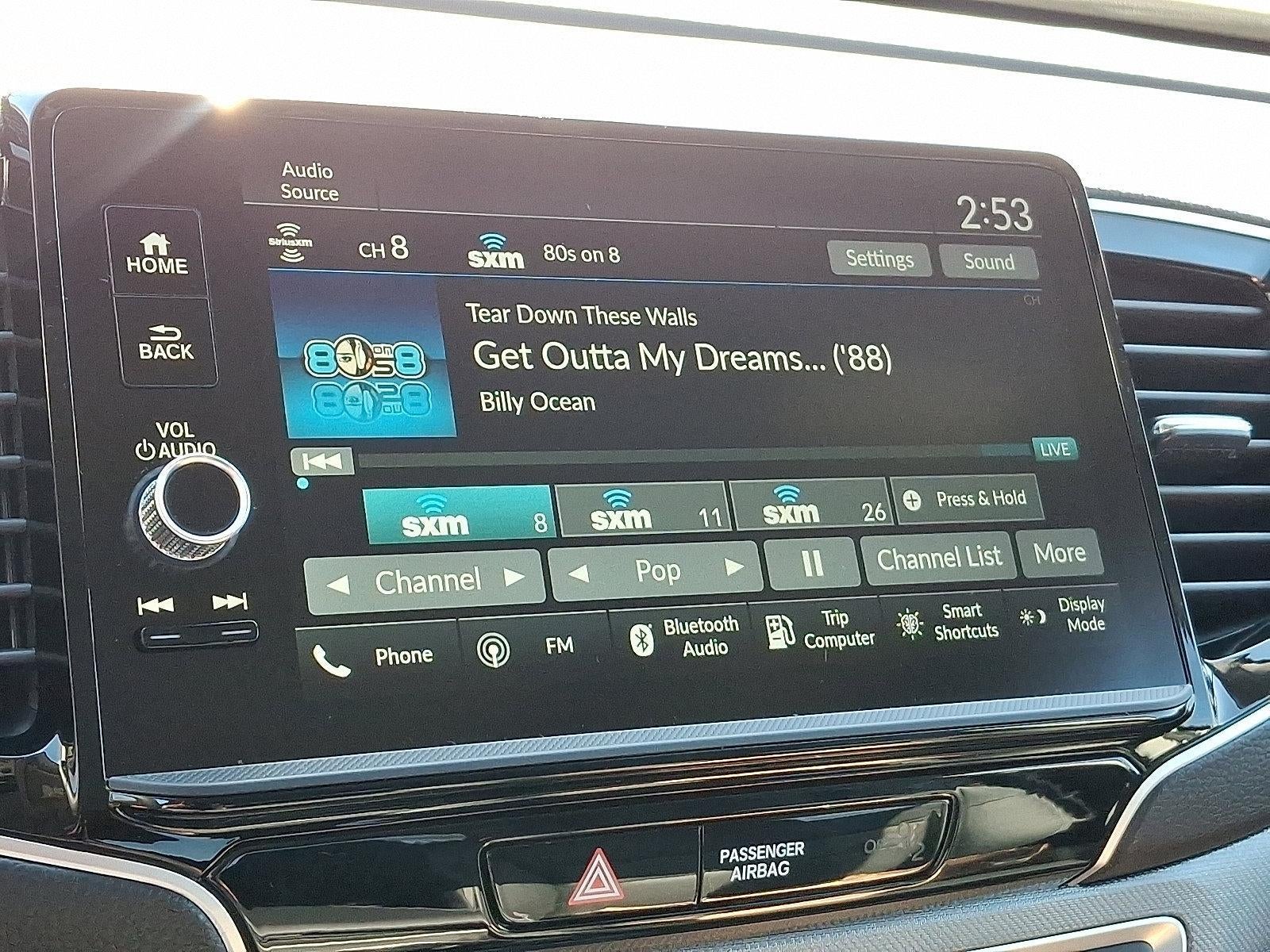 - Radio: 215-Watt Audio System w/7 Speakers -inc: subwoofer, 9" color touchscreen, Bluetooth® streaming audio, Speed-Sensitive Volume Compensation (SVC), wireless Apple CarPlay/Android Auto compatibility and 2.5A USB-A data port in front console, HondaLink, Select HondaLink features are complimentary, 36-month complimentary trials are available for security and remote packages, A subscription is required to continue HondaLink services after the trial ends