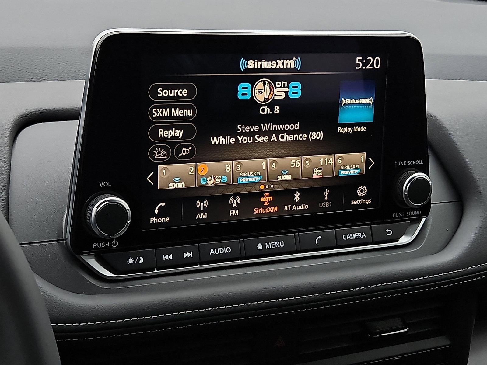 - Radio: AM/FM NissanConnect -inc: 6 speakers plus 2 tweeters, Apple CarPlay, Android Auto, 8" color touch screen display, Bluetooth®, 2 front USB type-C, Wi-Fi hotspot and NissanConnect Services powered by SiriusXM
