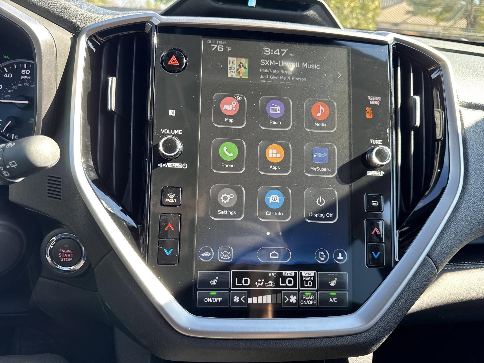 - Radio: Subaru 11.6" Multimedia System w/Navigation -inc: AM/FM stereo HD Radio, multi-touch gesture high resolution display screen, voice activated controls for radio and navigation, Bluetooth® audio streaming and hands-free phone connectivity w/SMS text messaging connectivity (refer to subaru.com for cell phone compatibility), TomTom navigation software w/what3words, iPod control capability, smartphone integration for Android Auto and Apple CarPlay w/full screen view and wireless connection, USB audio system update, audio system control switches, hands-free phone switches and voice command talk switch on steering wheel, harman/kardon quantum logic surround sound speaker system w/14 speakers, subwoofer and harman/kardon 792 watt equivalent maximum output amplifier, illuminated 3.5mm auxiliary input jack, illuminated USB A and C input/charge ports, SiriusXM w/360L (4 months free trial included/subscription required after) and SiriusXM Travel Link (4 months free trial included/subscription required after)