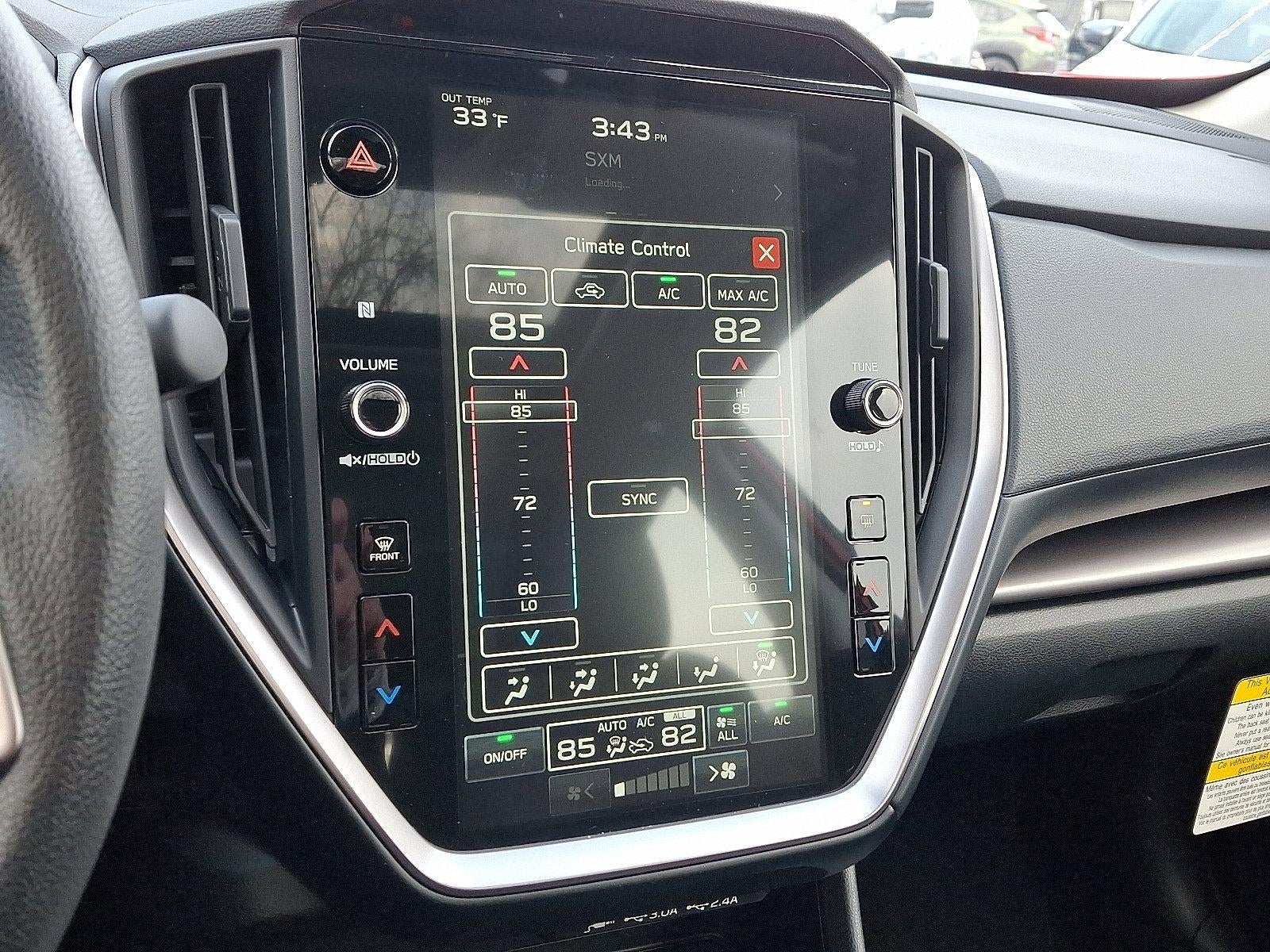 - Radio: Subaru 11.6" Multimedia Plus System -inc: valet mode, AM/FM stereo, HD Radio, multi-touch gesture high resolution display screen, voice activated controls, Bluetooth® audio streaming and hands-free phone connectivity, Bluetooth® hands-free SMS text messaging connectivity, iPod control capability, smartphone integration: wired and wireless Android Auto w/full screen view, wireless Apple CarPlay w/full screen view and wireless connection, USB and Over The Air (OTA) audio system update, audio system and Bluetooth® steering wheel control switches, 6 speakers (2 dash panel tweeter, 2 front door, 2 rear door), illuminated 3.5mm auxiliary input jack, illuminated USB A and C input charge ports, roof mounted satellite and connected services, roof mounted black antenna, connected services operation indicator, SOS emergency assistance (red button) and ehanced roadside assistance (blue i-button)