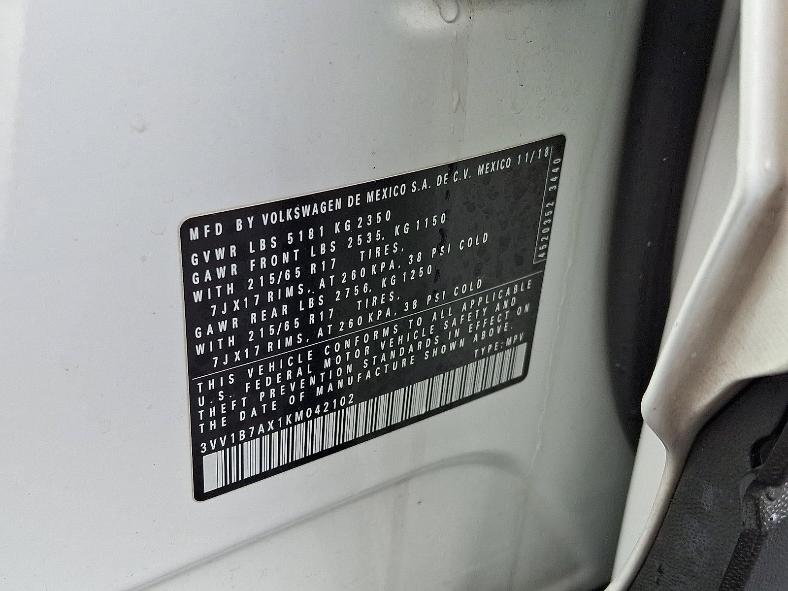 Recent Arrival! 2019 Volkswagen Tiguan 2.0T S Pure White *Schedule a test Drive at your home or office*, 17" 10-Spoke Alloy Wheels, 3-Row Rubber Mats Kit (DISC), 3.33 Axle Ratio, 3rd row seats: bench, 4-Wheel Disc Brakes, 4-Wheel Independent Suspension, 6 Speakers, ABS brakes, Air Conditioning, Alloy wheels, AM/FM radio, Blind Spot Monitor w/Rear Traffic Alert, Brake assist, Bumpers: body-color, Cloth Seating Surfaces, Compass, Delay-off headlights, Driver Assistance Package, Driver door bin, Driver vanity mirror, Dual front impact airbags, Dual front side impact airbags, Electronic Stability Control, Exterior Parking Camera Rear, Forward Collision Warning, Four wheel independent suspension, Front anti-roll bar, Front Bucket Seats, Front Center Armrest, Front reading lights, Fully automatic headlights, Heated door mirrors, Heavy Duty Trunk Liner w/VW CarGo Blocks, Illuminated entry, Low tire pressure warning, Occupant sensing airbag, Outside temperature display, Overhead airbag, Overhead console, Panic alarm, Passenger door bin, Passenger vanity mirror, Power door mirrors, Power steering, Power windows, Radio data system, Radio: Composition Color AM/FM, Rear anti-roll bar, Rear reading lights, Rear seat center armrest, Rear window defroster, Rear window wiper, Remote keyless entry, Roof rack: rails only, Speed control, Speed-sensing steering, Split folding rear seat, Spoiler, Steering wheel mounted audio controls, Tachometer, Telescoping steering wheel, Tilt steering wheel, Traction control, Trip computer, Turn signal indicator mirrors, Variably intermittent wipers.