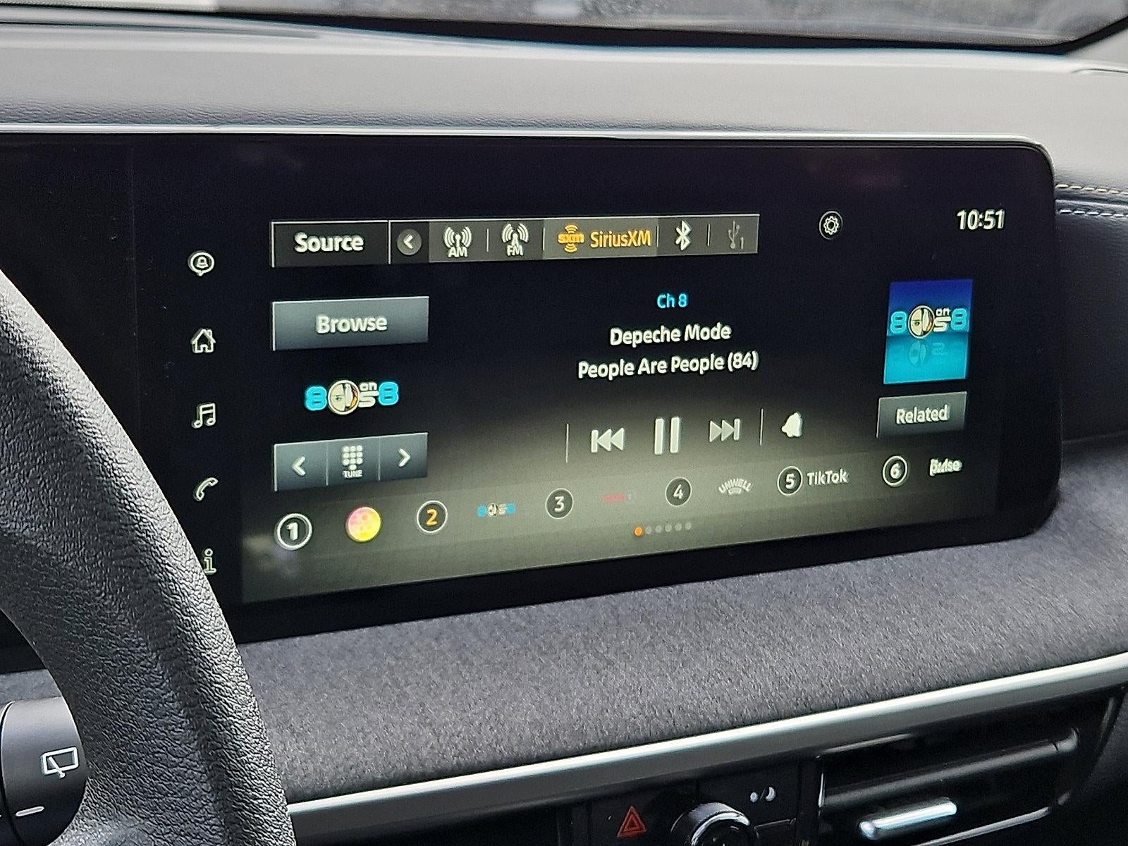 - Radio: AM/FM Audio System -inc: 12.3 color touchscreen display w/4 speakers, Bluetooth® hands-free phone system, streaming audio via Bluetooth®, audio and Bluetooth® steering wheel switches, USB C (data and charge) (front), NissanConnect featuring wireless Apple CarPlay, wireless Android Auto, Siri eyes free, SiriusXM satellite radio w/advanced auto features and hands-free text messaging assistant